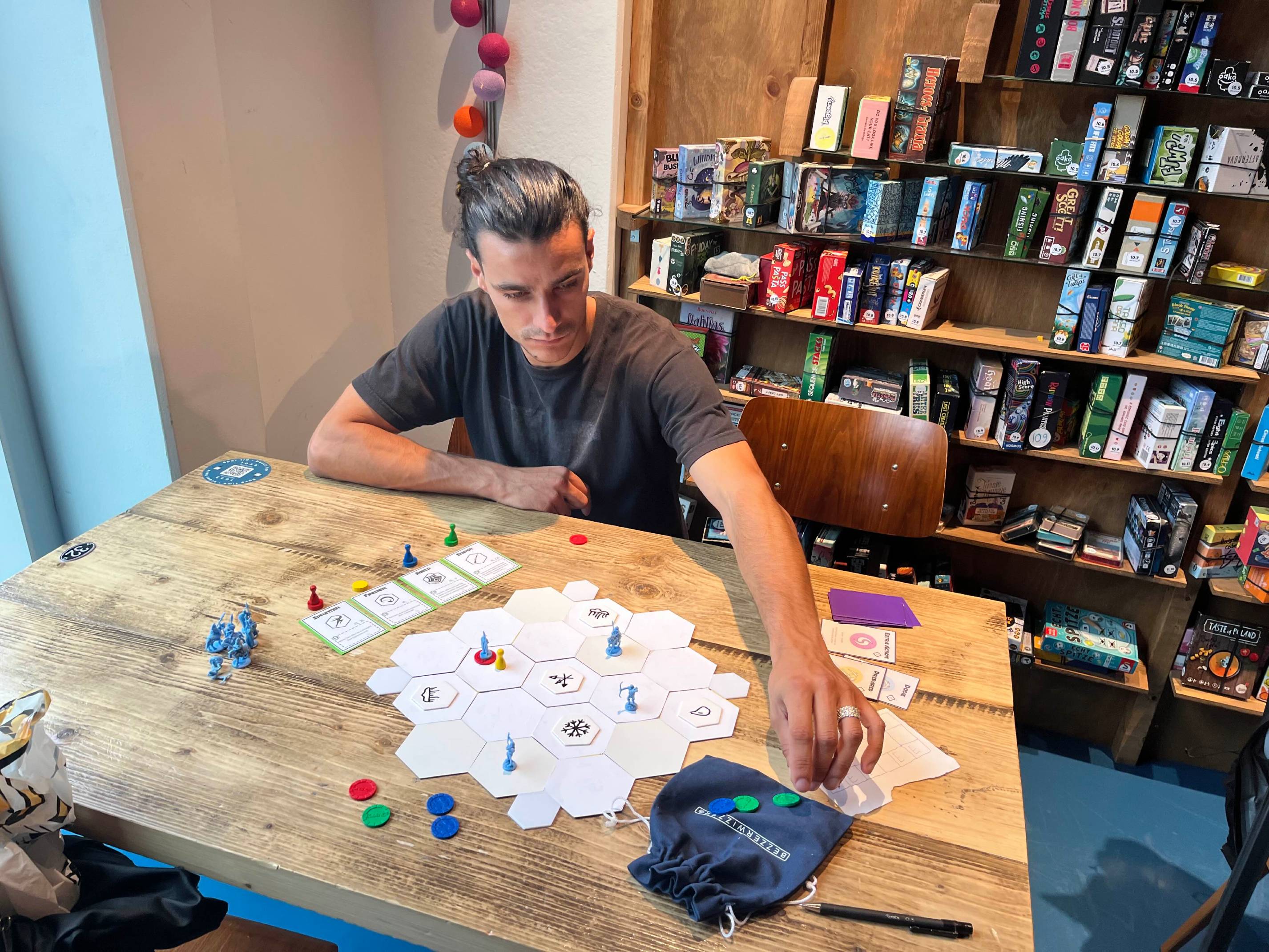 The game has mostly been tested with three players. We would like to test it more with two players and four players. We initially made the game at PapJam and have been testing it since the early stages. We are attending multiple playtests to get as much data and feedback as possible. We are happy with the core gameplay loop and would like to expand the goals of the game for Fastaval